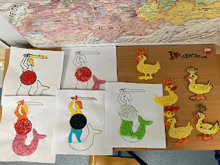 Uczniowie klasy V stworzyli pisakami 3D - syrenkę i złotą kaczkę - symbolicznych bohaterów warszawskich legend.